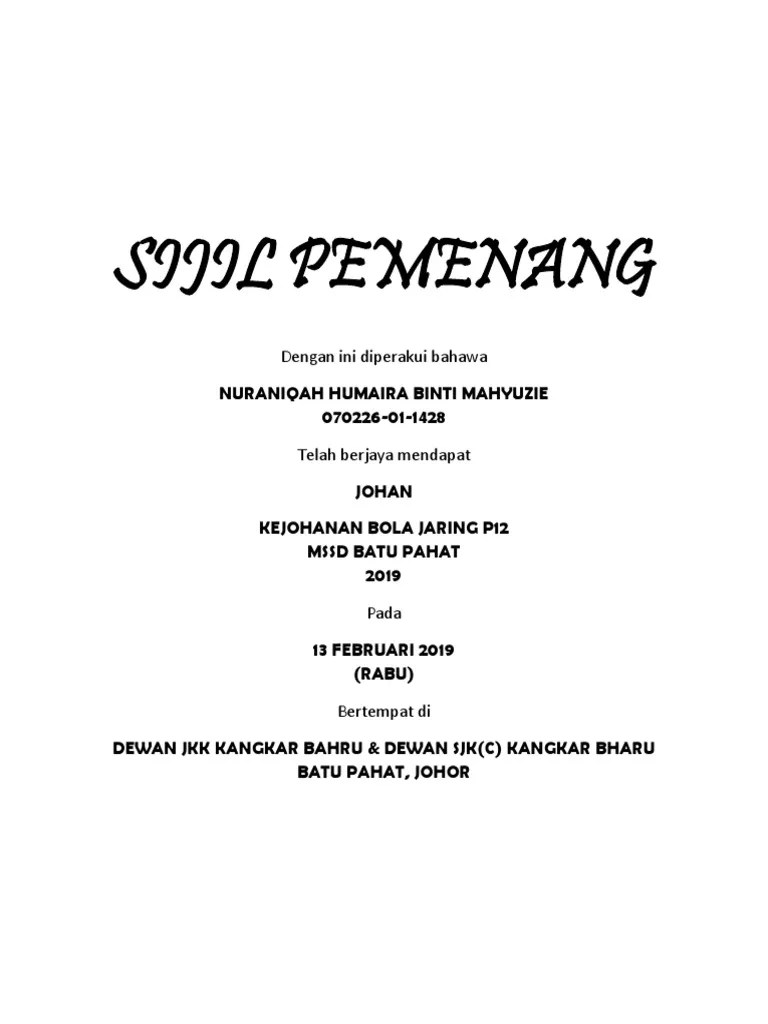 Contoh Sijil Pemenang Pertandingan : Pk Persekutuan Pengakap Malaysia Daerah Batu Pahat. Contoh sijil pemenang pertandingan shiranase. Contoh sijil penghargaan mail merge . Assalamualaikum w.b.t dan salam sejahtera. Contoh yang dimasukkan ini sekadar panduan dan rujukan sahaja. percuma 11 template sijil penyertaan/penghargaan/pemenang untuk sebarang majlis/pertandingan. Percuma 11 template sijil penyertaan penghargaan pemenang untuk sebarang . Percuma 11 template sijil penyertaan penghargaan pemenang untuk sebarang majlis pertandingan. Assalamualaikum w.b.t dan salam sejahtera.